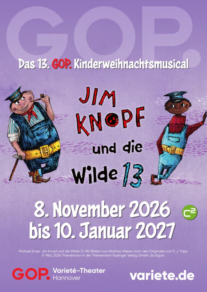 Nach dem großen Publikumserfolg von „Jim Knopf und Lukas der Lokomotivführer“ kehrt das Abenteuer aus Lummerland zurück ins GOP Varieté-Theater Hannover. Ab November 2026 wird dort mit „Jim Knopf und die Wilde 13“ die Fortsetzung von Michael Endes weltbekanntem Kinderbuchklassiker als Kindermusical für die ganze Familie auf die Bühne gebracht.